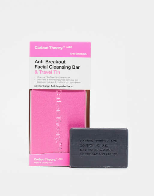 Carbon Theory – Anti-Breakout Facial Cleansing Bar & Travel Tin – Gesichtsseife gegen Pickel mit Reisedose