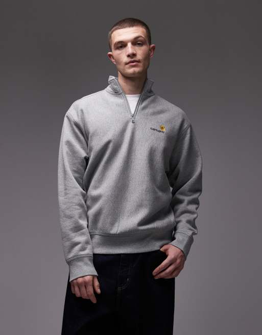 Carhartt WIP – American Script – Sweatshirt in Grau mit kurzem Reißverschluss