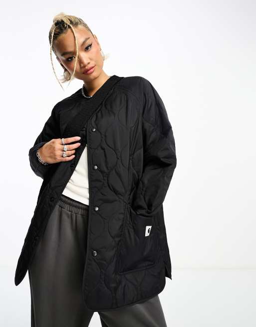 Carhartt WIP – Charleston – Lange gefütterte Steppjacke in Schwarz