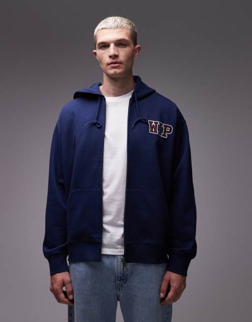 Carhartt WIP – Kurze Kapuzenjacke in Blau mit Reißverschluss und WIP-Logo