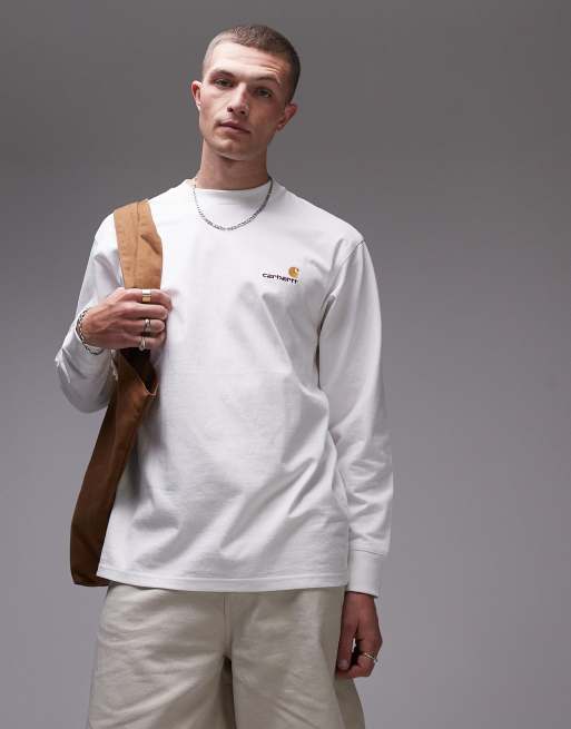 Carhartt WIP – Langärmliges T-Shirt in Weiß mit American-Schriftzug