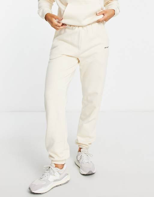 Carhartt WIP – Locker geschnittene Jogginghose in Cremeweiß mit kleinem Logo, Kombiteil