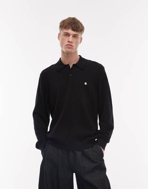 Carhartt WIP – Madison – Langärmliges Polohemd in Schwarz