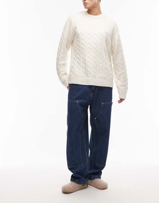 Carhartt WIP – Nash – Loose-Fit-Jeans in blauer Stone-Waschung mit doppelter Stofflage an den Knien