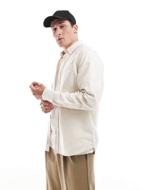 Carhartt WIP – Oxford-Shirt in Creme mit Logo