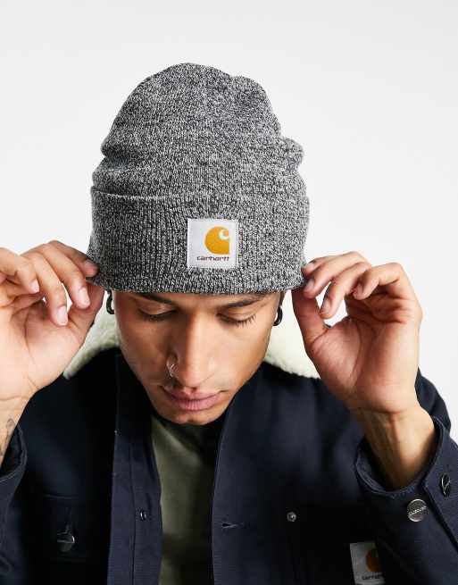 Carhartt WIP – Scott – Gefütterte Strickmütze in schwarzem Kalk