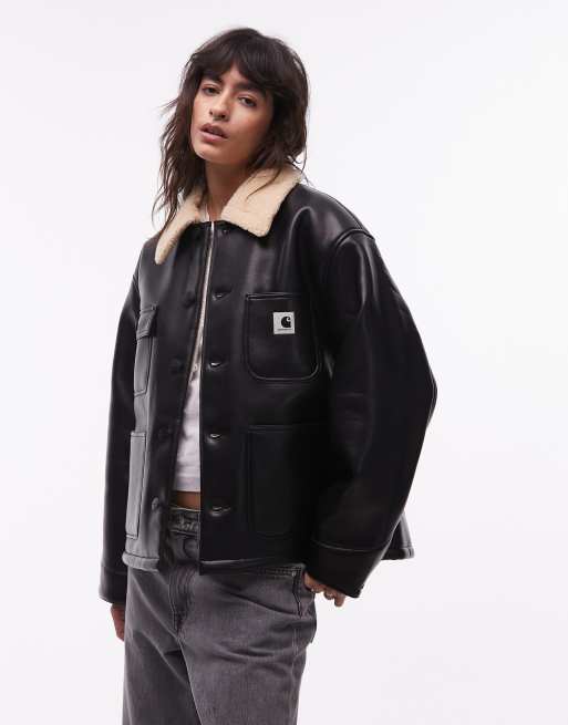 Carhartt WIP – Shepton OG – Jacke aus Kunstleder in Schwarz