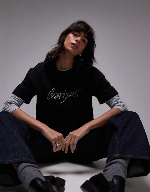 Carhartt WIP – T-Shirt in Schwarz mit Schriftzug in tropfender Optik