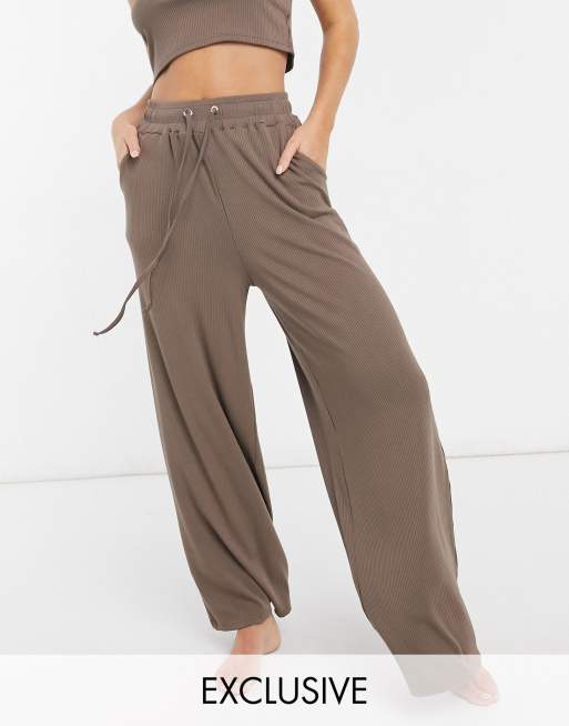 Catch – Exklusive, gerippte Hose in Braun mit weitem Bein