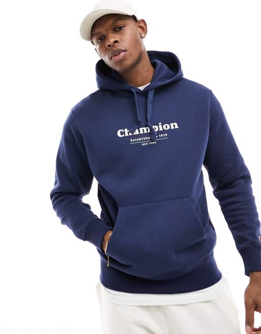Champion – Kapuzenpullover mit Aufdruck am Rücken in Marineblau