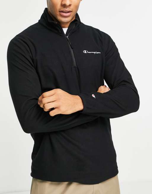 Champion – Polarfleece-Sweatshirt in Schwarz mit kurzem Reißverschluss und kleinem Logo