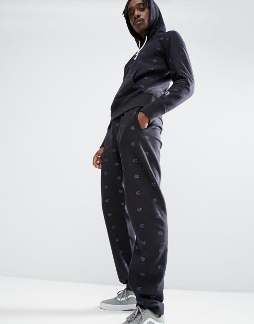 Champion – Schwarzer Trainingsanzug mit durchgängigem Print, exklusiv bei ASOS