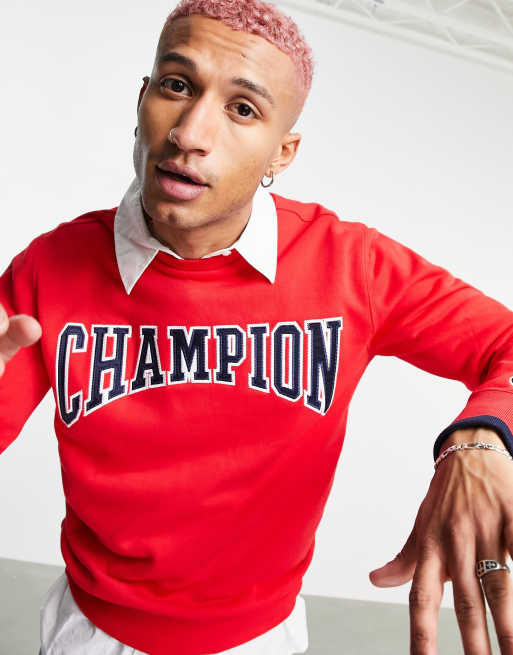 Champion – Sweatshirt mit großem Logo im College-Stil in Rot