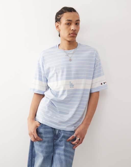 Champion – T-Shape – Gestreiftes T-Shirt in Blau mit „LA“-Logo