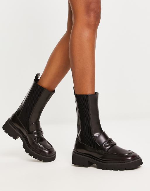 Charles & Keith – Wadenhohe Stiefel in dunklem Weinrot