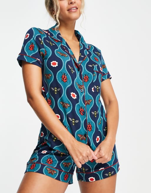 Chelsea Peers – Bunter Schlafanzug mit Kachelmuster mit Tiermotiven - Multi