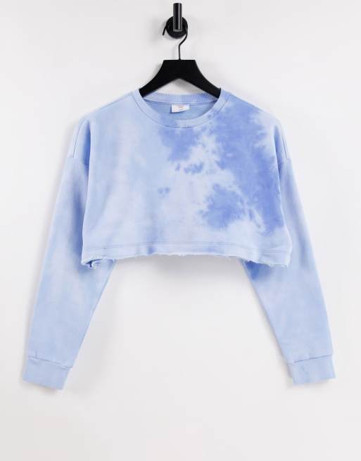 Chelsea Peers – Kurzes Baumwoll-Sweatshirt mit Batikmuster in Blau und ungesäumter Kante - MBLUE