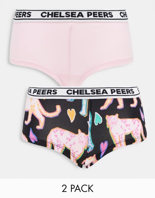 Chelsea Peers – Love – 2er-Pack Boxershorts in Rosa und Weiß und mit Leopardenprint