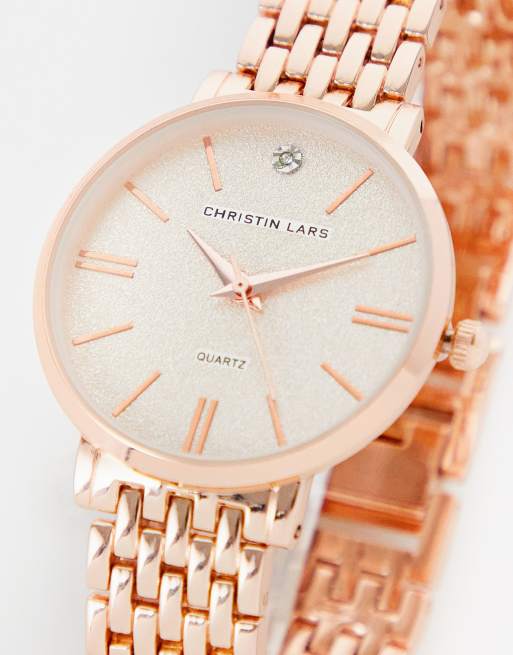 Christin Lars – Damen – Armbanduhr mit Kettenarmband in Roségold