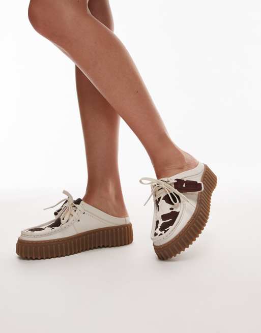 Clarks – Torhill – Mules aus Wildleder mit Kuhfleckenmuster