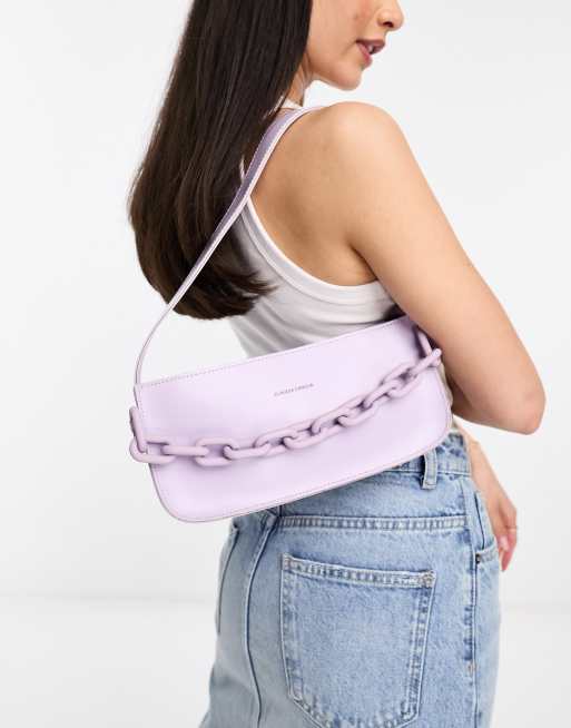 Claudia Canova – Baguette-Schultertasche in Flieder mit farblich abgestimmtem Kettendetail