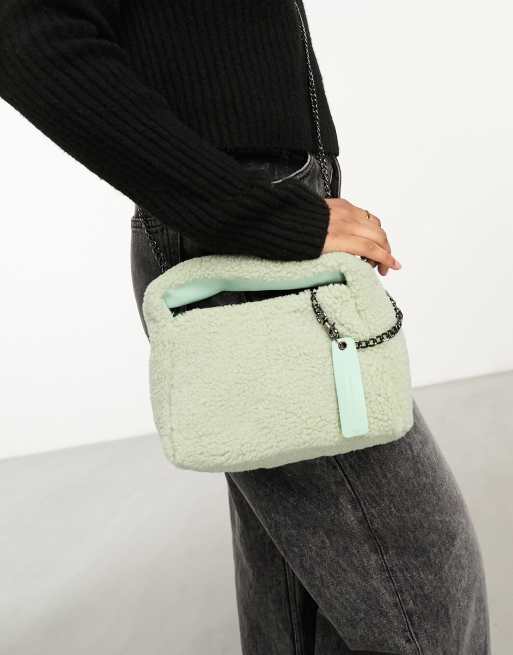 Claudia Canova – Mini-Handtasche aus Kunstpelz in Minzgrün mit Umhängeriemen