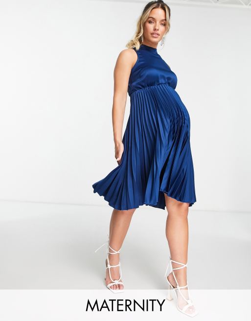 Closet London – Umstandsmode – Hochgeschlossenes, plissiertes Midikleid in Marineblau