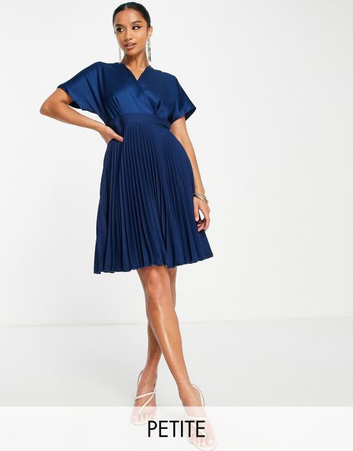 Closet London Petite – Plissiertes Mini-Skaterkleid in Marineblau mit gewickelter Vorderseite
