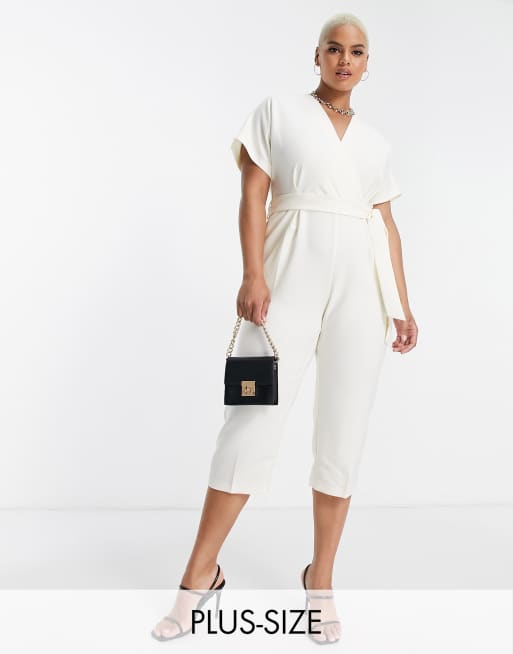 Closet London Plus – Jumpsuit in Cremeweiß mit Bindegürtel und Kimonoärmeln