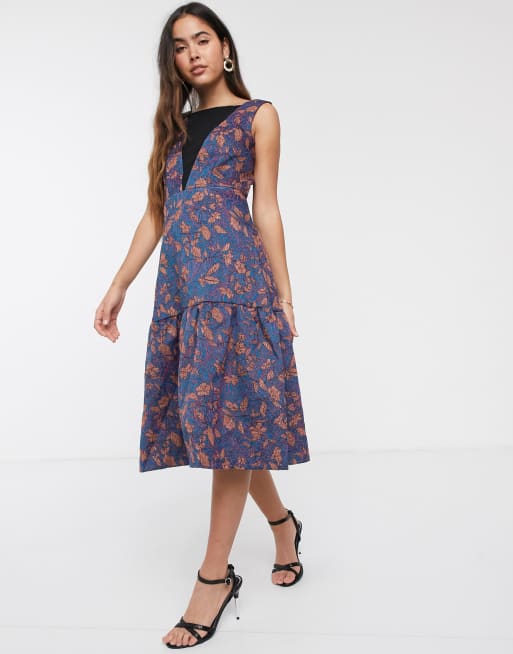Closet – Jacquard-Kleid in Gold mit abfallendem Saum