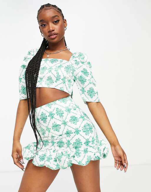 Collective the Label – Oberteil mit Puffärmeln, eckigem Ausschnitt und grünem Juwelenprint, Kombiteil