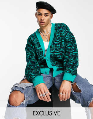 COLLUSION – Angeraute Jacquard-Strickjacke in Grün mit Wirbelmuster