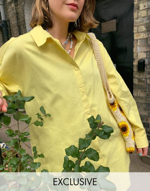 COLLUSION – Anglerhut und Mini-Hemdkleid aus Twill in Gelb