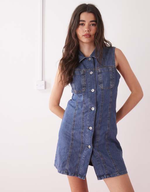 COLLUSION – Ärmelloses Jeans-Hemdkleid im 90er-Stil in mittlerer Waschung