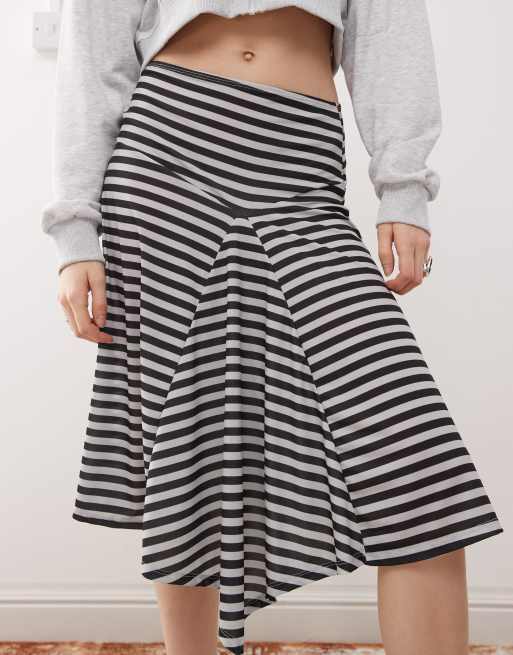COLLUSION – Asymmetrischer Midirock in Grau mit Retro-Streifen
