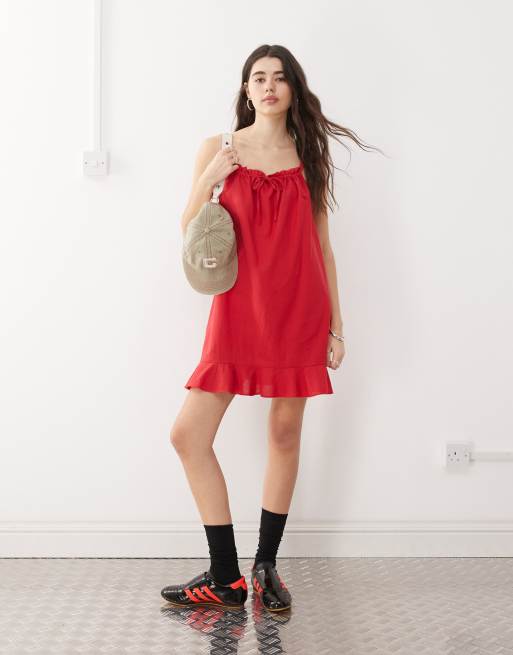 COLLUSION – Babydoll-Minikleid mit Leinen in Rot