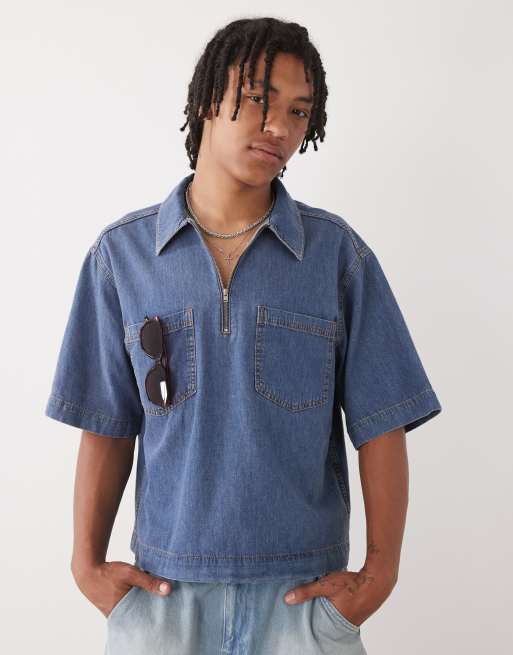 COLLUSION – Boxy Fit Denim-Webhemd in Blau mit Reißverschluss