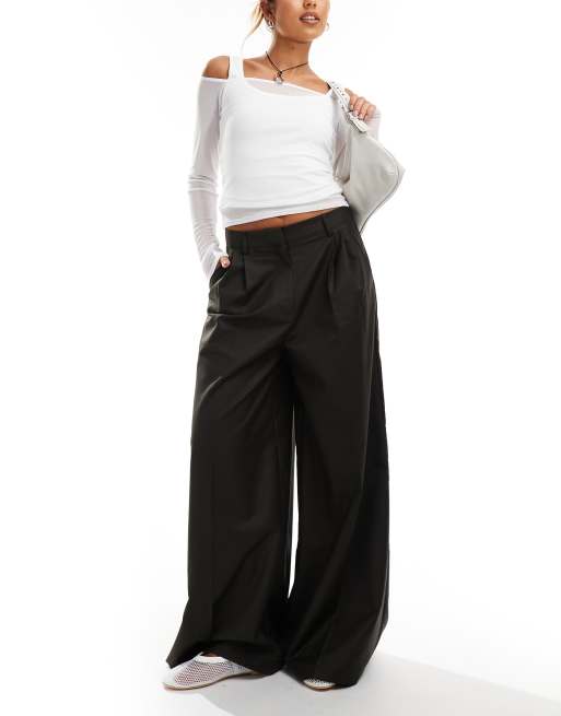 COLLUSION – Elegante, locker geschnittene Hose in dunklem Khaki mit weitem Beinschnitt