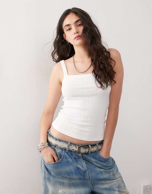 COLLUSION – Elevated – Pointelle-Camisole in Ecru mit eckigem Ausschnitt