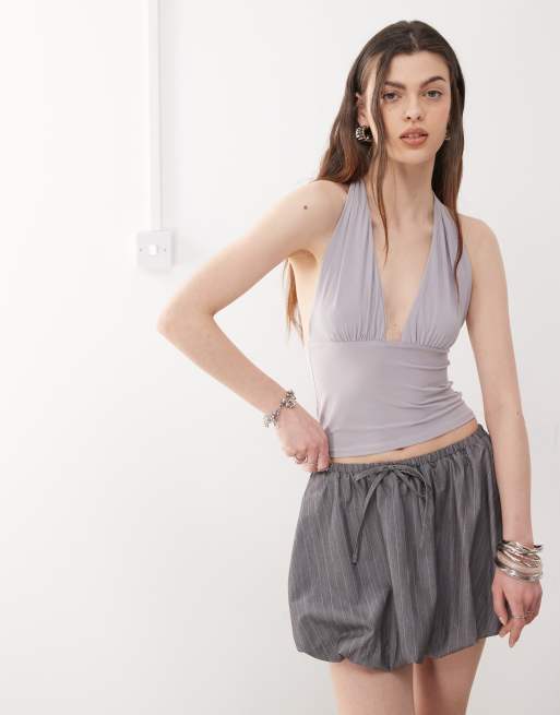 COLLUSION – Figurbetontes Longline-Oberteil aus grauem Cupro mit Neckholder