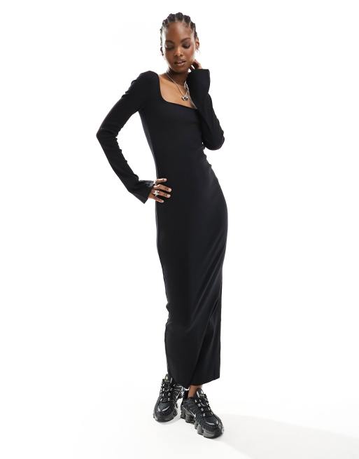 COLLUSION – Geripptes Maxikleid in Schwarz mit eckigem Ausschnitt