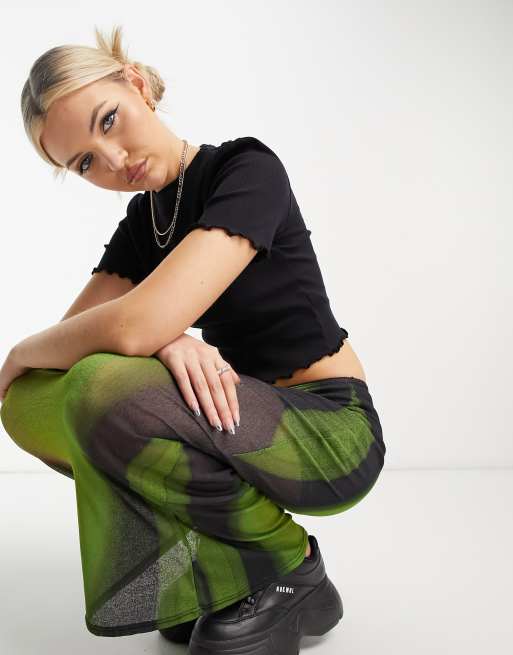 COLLUSION – Geripptes T-Shirt in Schwarz mit gekräuseltem Saum