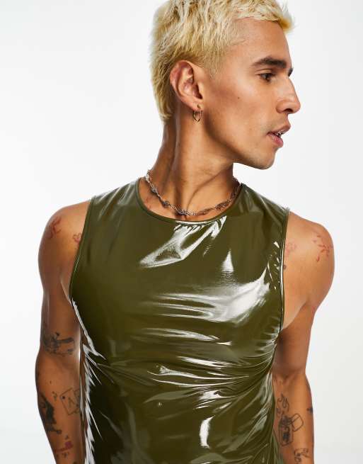 COLLUSION – Hochglänzendes Muskelshirt in Khaki