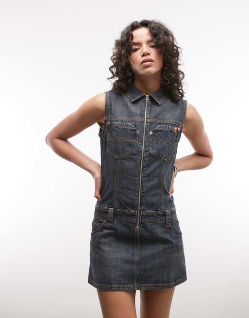 COLLUSION – Jeanskleid in dunkler Waschung mit tiefer Taille