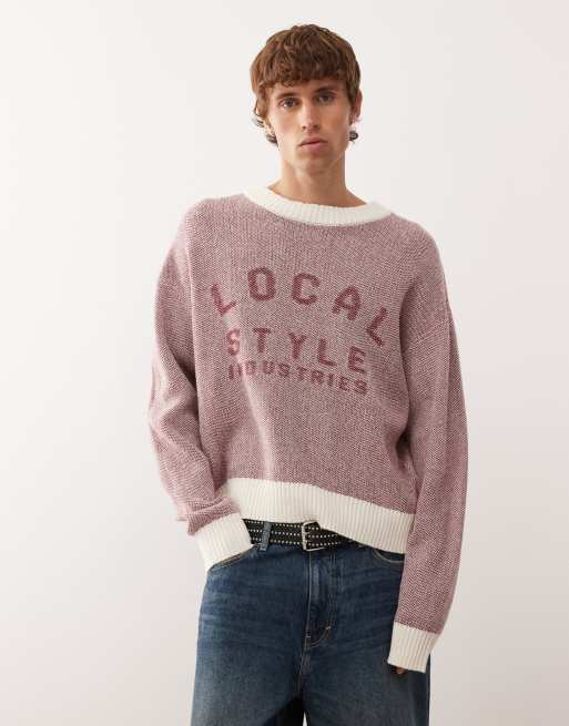COLLUSION – Kastig geschnittener Strickpullover in Rot und Weiß mit Kontrastbesatz