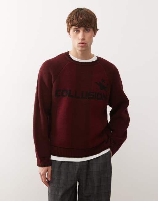 COLLUSION – Kastiges, gestricktes Sweatshirt im Fußball-Design in Rot