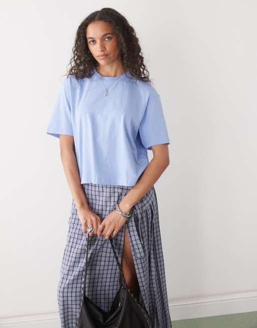 COLLUSION – Kastiges, kurzärmliges T-Shirt in Blau