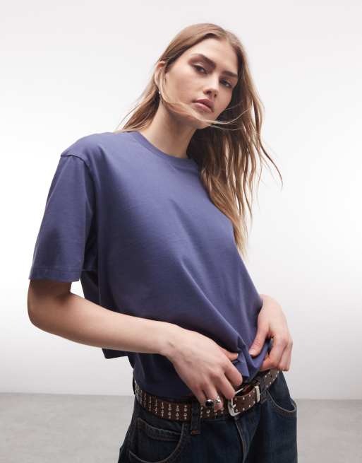 COLLUSION – Kastiges T-Shirt in Dunkelblau