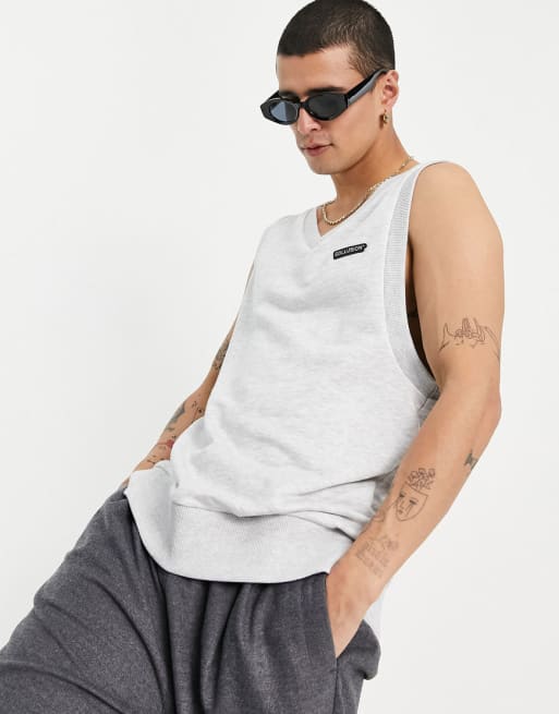 COLLUSION – Kombiteil mit ärmellosem Sweatshirt und lockerer Jogginghose mit Logoaufnäher in Kalkgrau