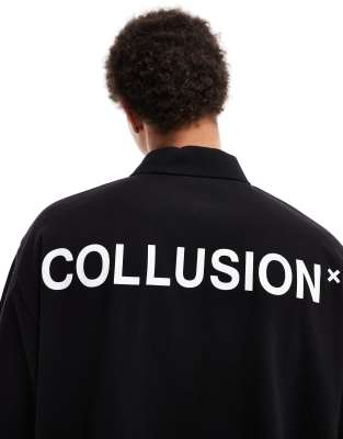 COLLUSION – Kurzärmliges Poloshirt in Schwarz mit Rückenprint